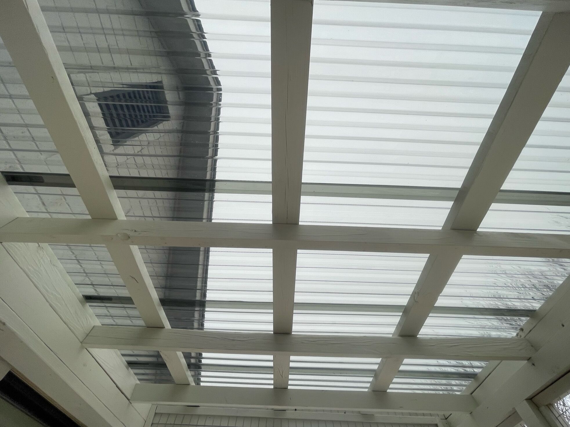 - All lumber, polycarbonate roofing, galvanized mesh, and hardware