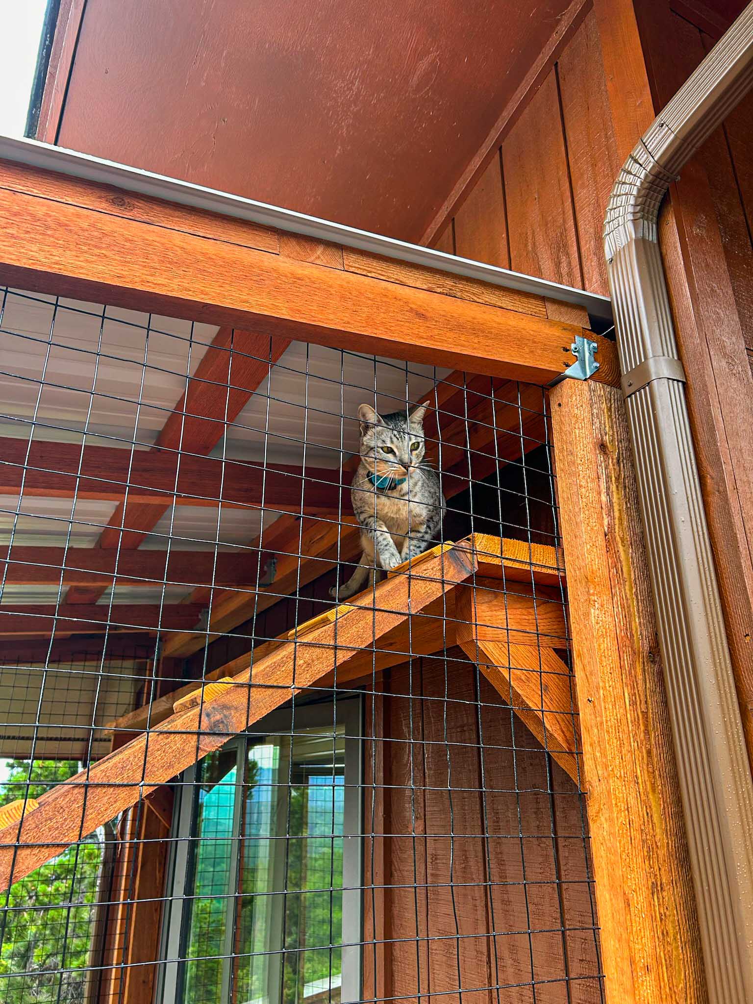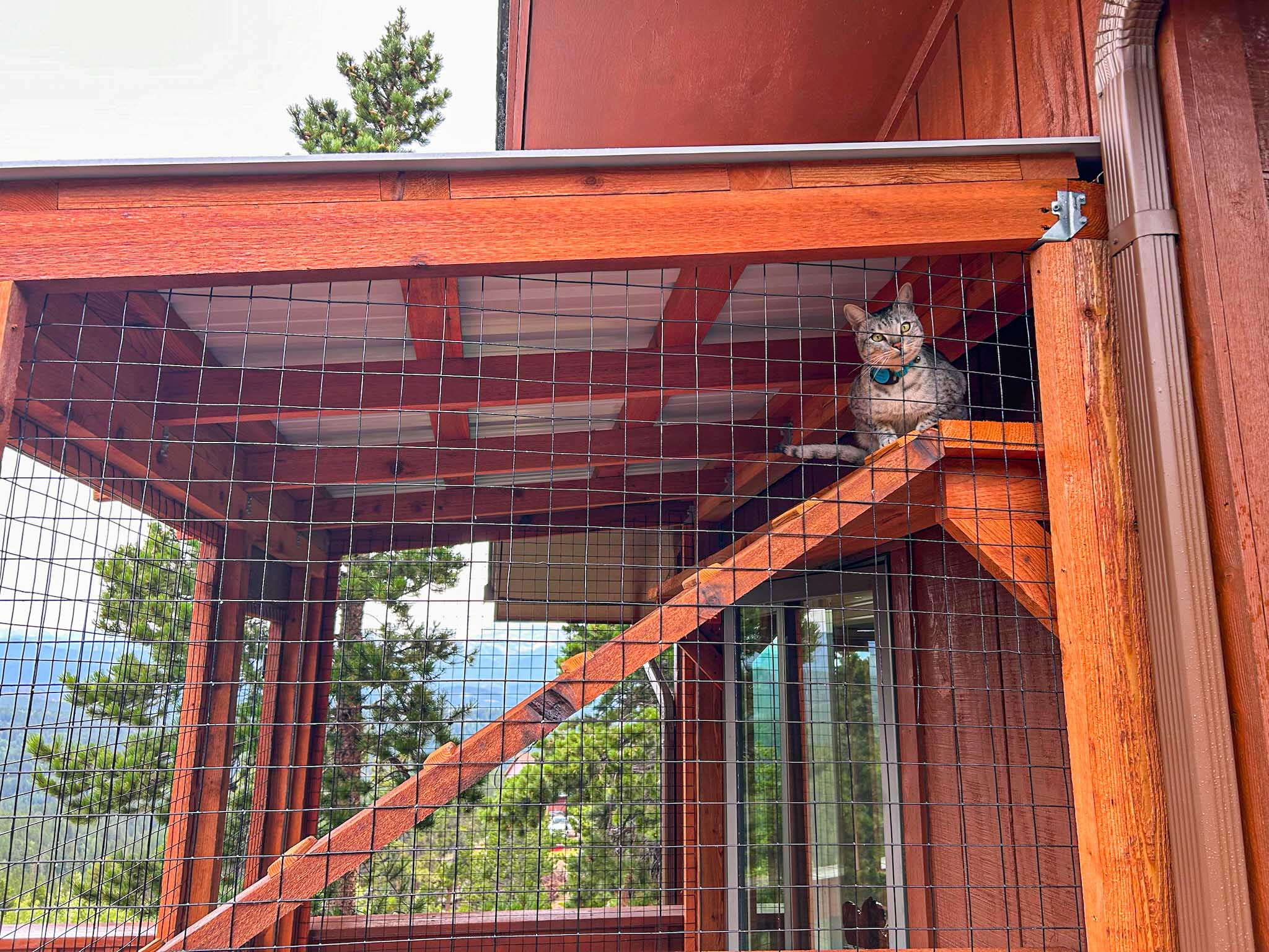 Meowntain Lounge isn’t just a cat enclosure — it’s a luxurious, functional addition to your home. Every detail is made with care, from the hand-stained cedar and elevated deck to the tunnel’s slatted shade design. Your cat will love the freedom to explore, and you’ll appreciate the style it brings to your outdoor space.