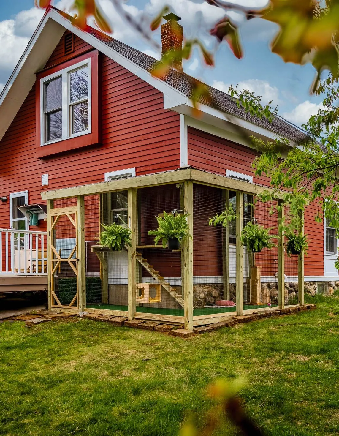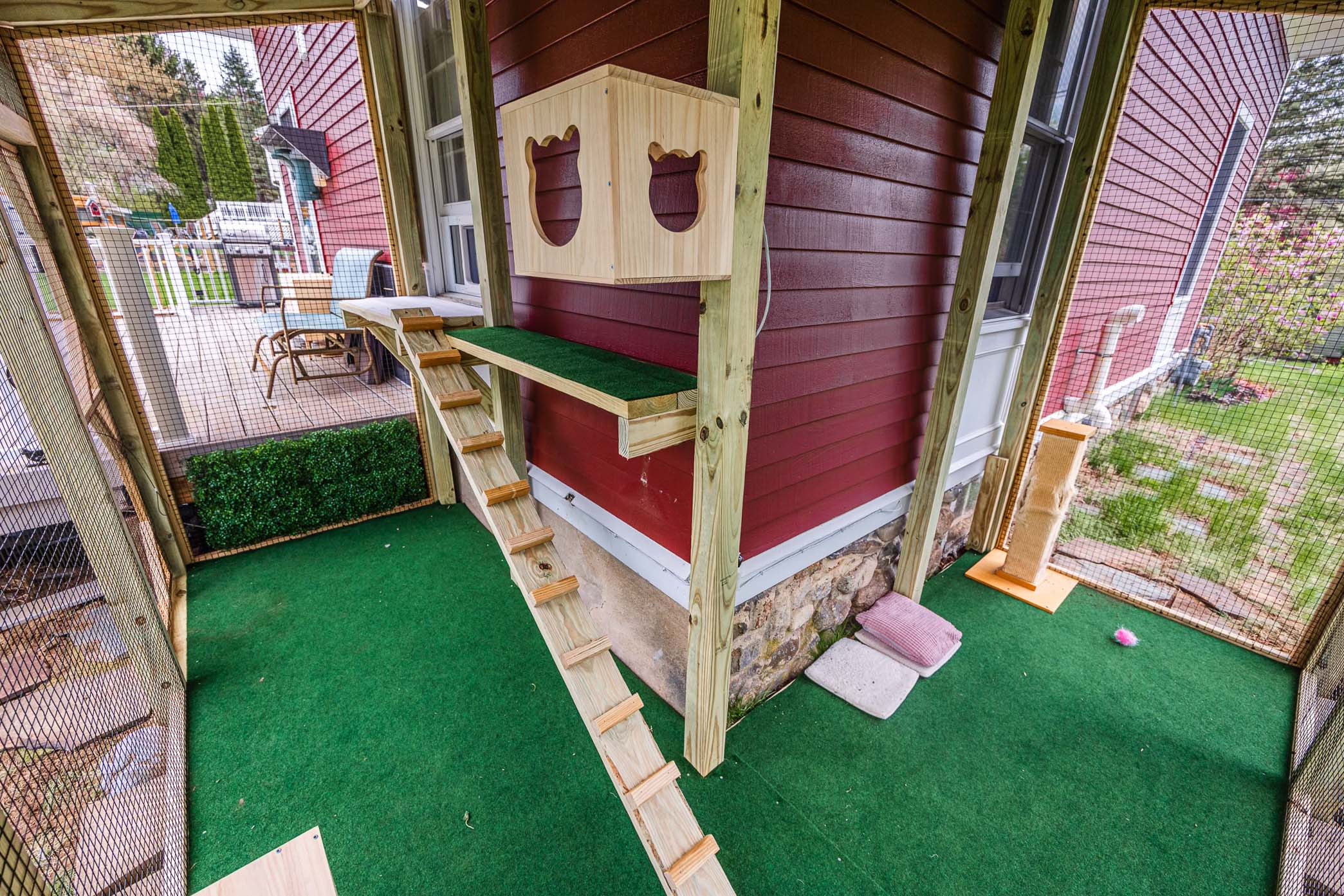 The Haverhill Hideout: Custom Wraparound Outdoor Cat Enclosure with Twin Sections & Cat Cubbies