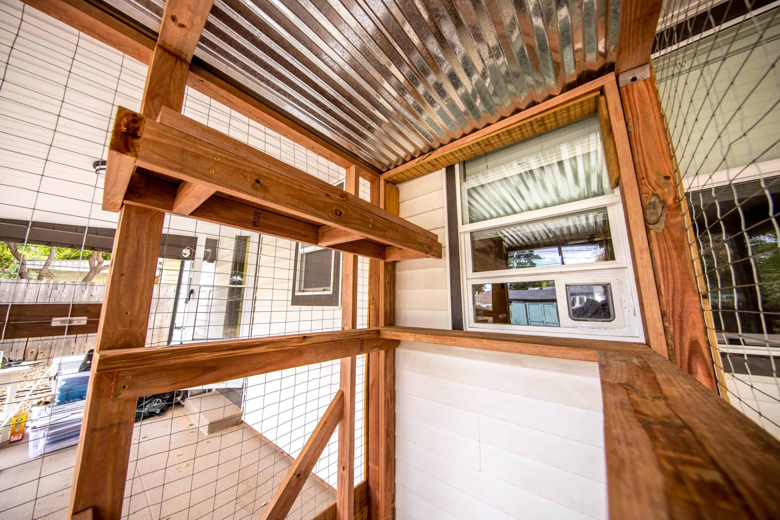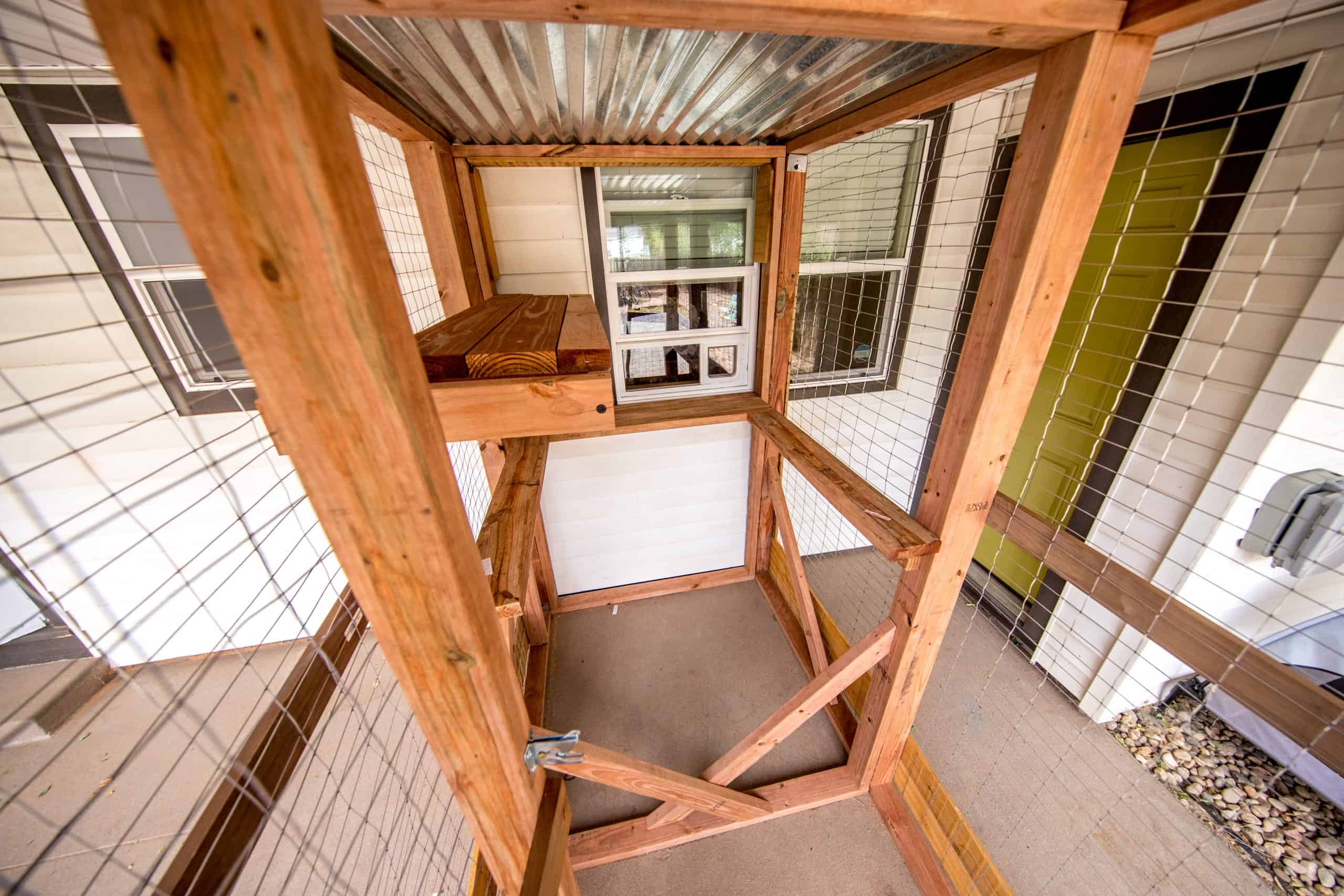 The Hazel Nut is a roomy 32 square feet. Enough room to host 2-3 cats! This catios style aims for more simplicity yet built with the highest quality lumber. Its great for the backyard and can fit under most any deck awnings.