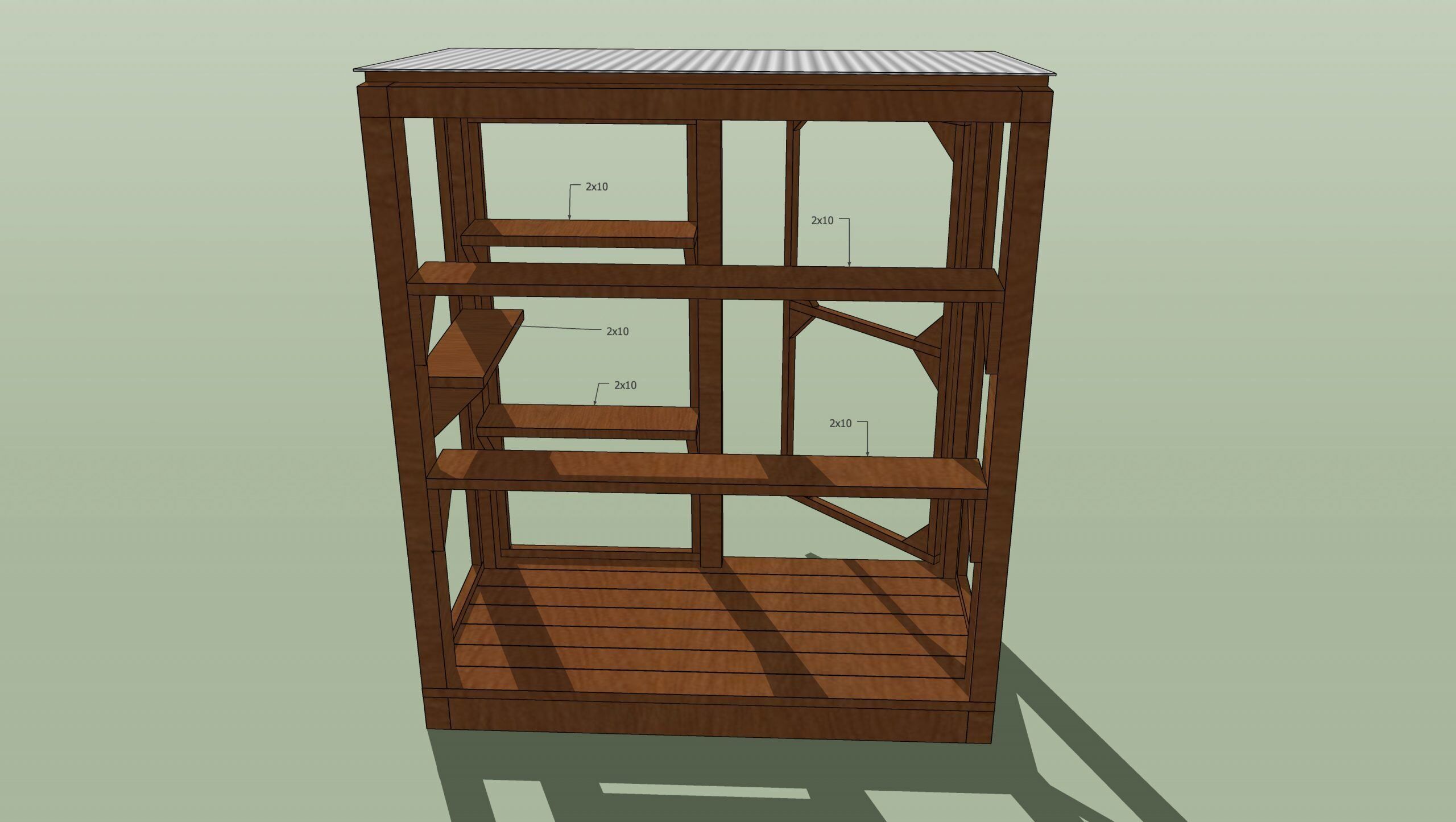 Full Shelving System: 6 tear shelving system. All shelves consist of 2×12 perches