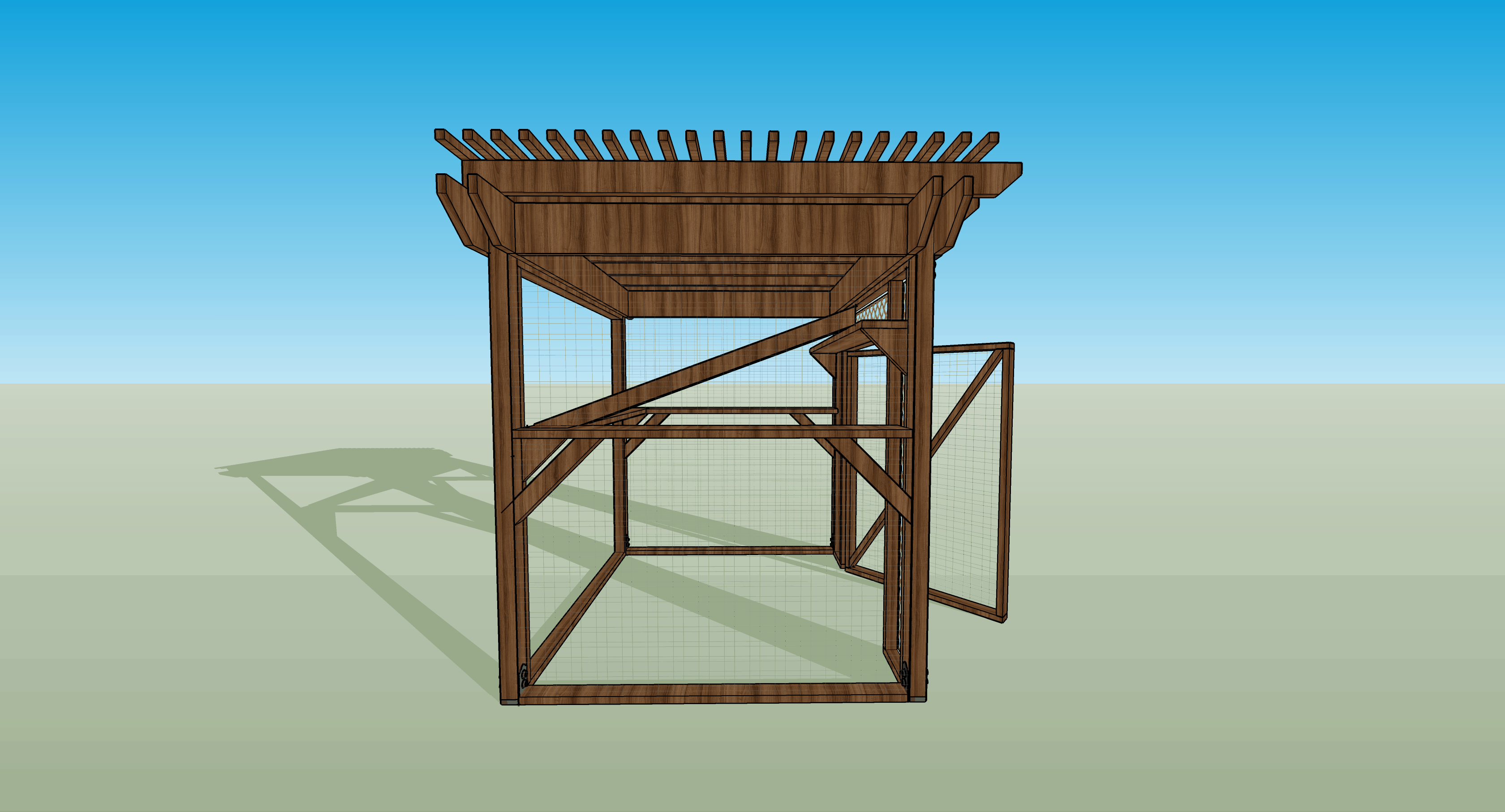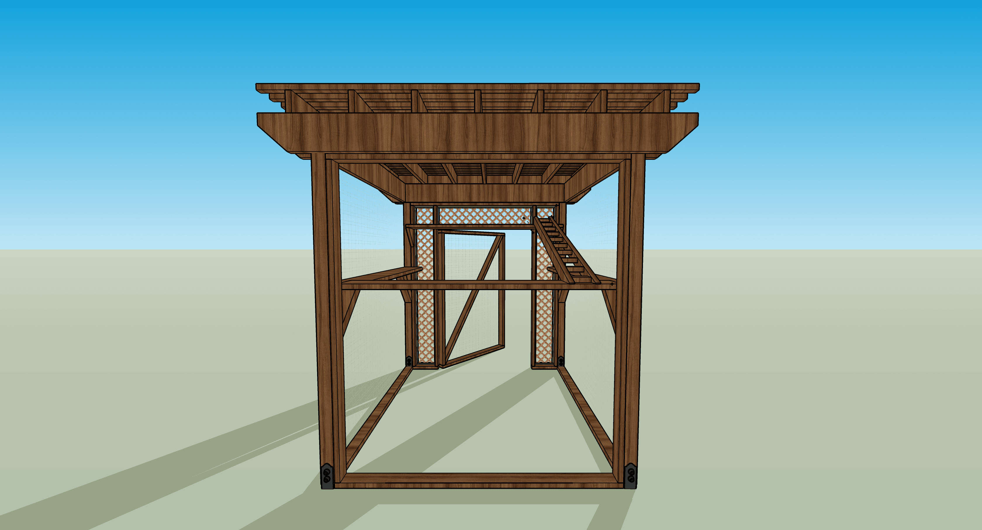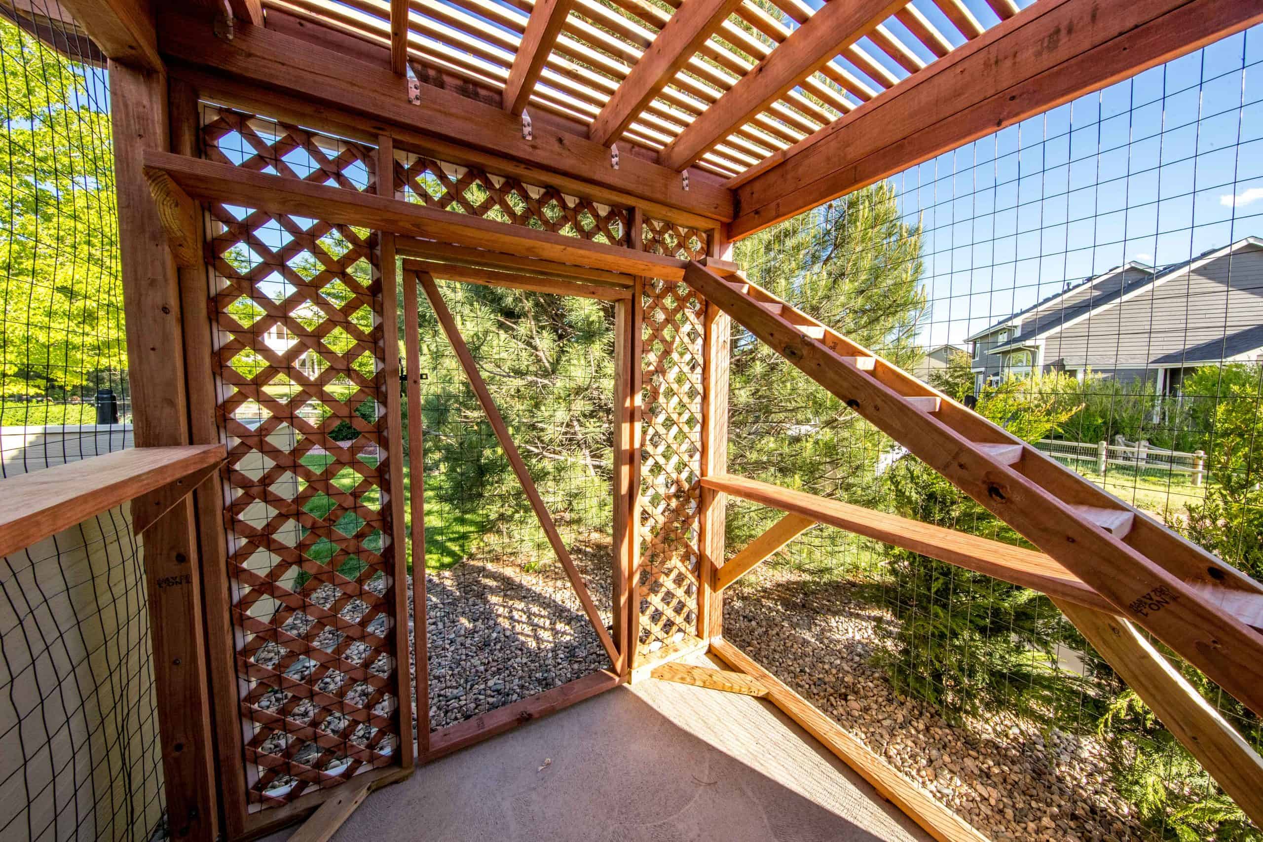 The Purrgola catio is built using pressure treated lumber. Have a different type of wood in mind? Cat Topia offers upgrades to use cedar or redwood. For cedar or redwood, we recommend staining the lumber to prevent the wood for discoloring. Pressure treated lumber is a great option since it is long lasting, and resistant to weather and insects.